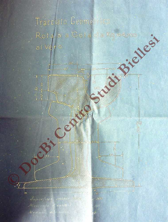 Allecata una cianografia relativa al "Profilo delle rotaie Vignole" (rotaie Vignoles) e al "Tracciato geometrico rotaia a gola da kg 44,700 al vero".