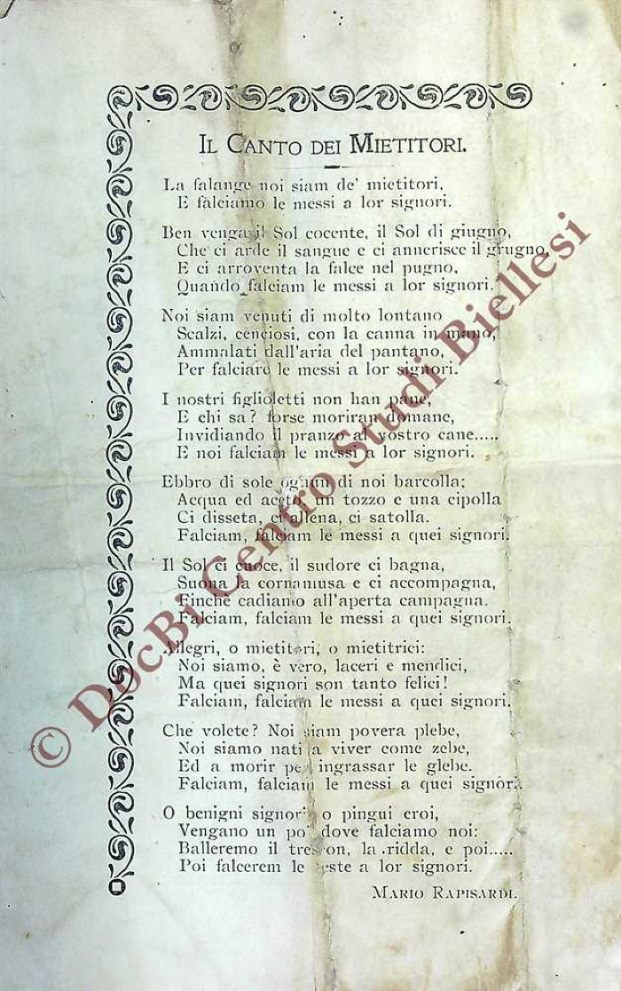 Il canto dei minatori Il canto dei mietitori
