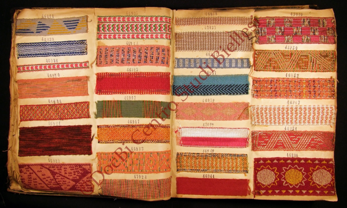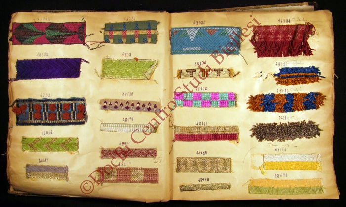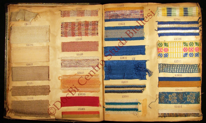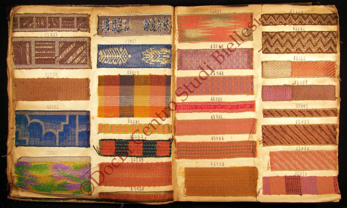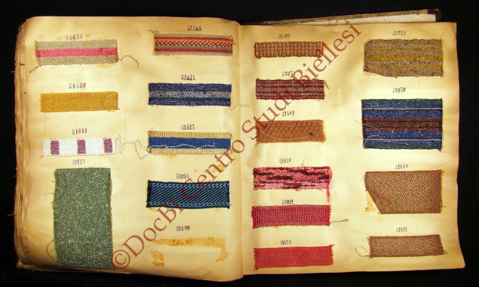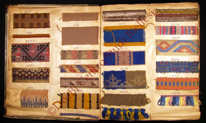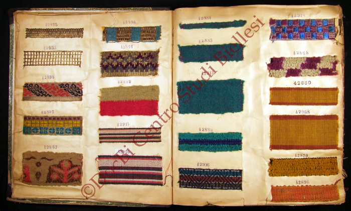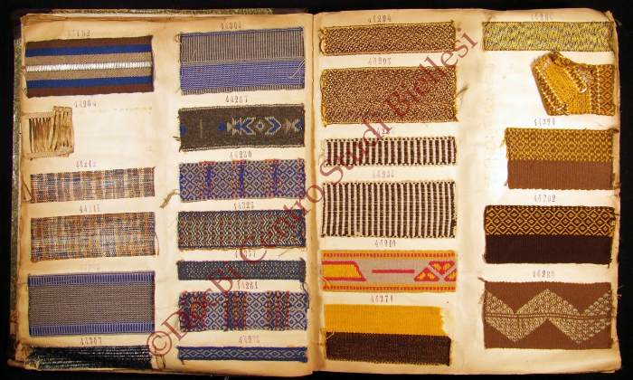 E' un campionario con tessuti che hanno tonalità sia chiare che scure e fantasie di diverso tipo