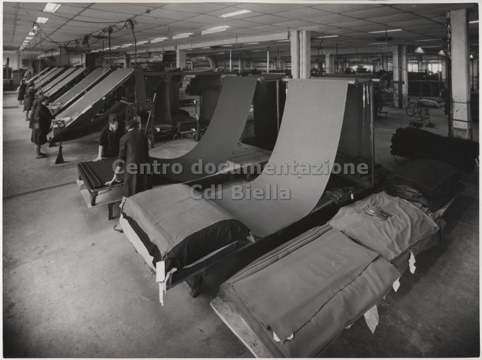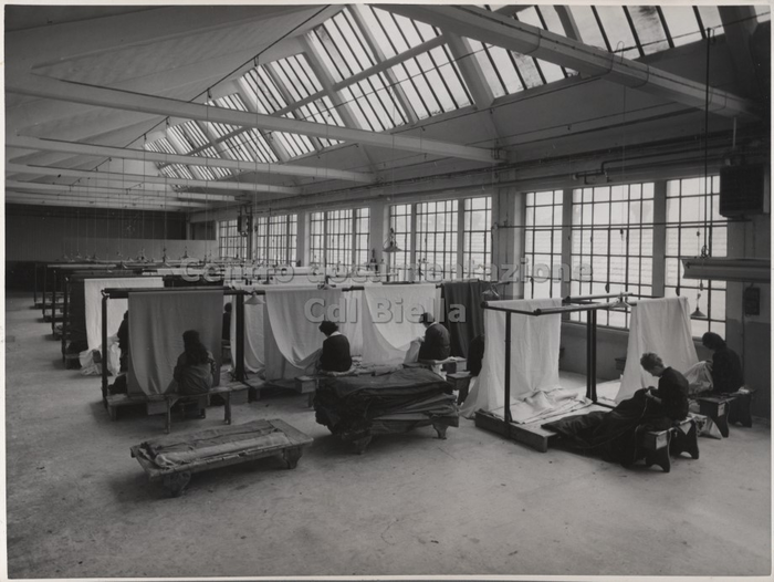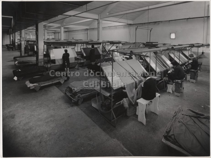 Immagini, anche in più copie, scattate all'interno dei reparti dei Lanifici. Le fotografie riprendono: il deposito di materie prima con le balle di lana in primo piano, la tintoria, la pettinatura, la filatura, l'orditura, la tessitura, la pinzatura e la rammendatura. Le due immagini della filatura pettinata sono state scattate nell'edificio in via Carso, le altre nell'edificio di via Repubblica. Nelle immagini dalla tessitura in poi è presente anche il personale, tutto femminile