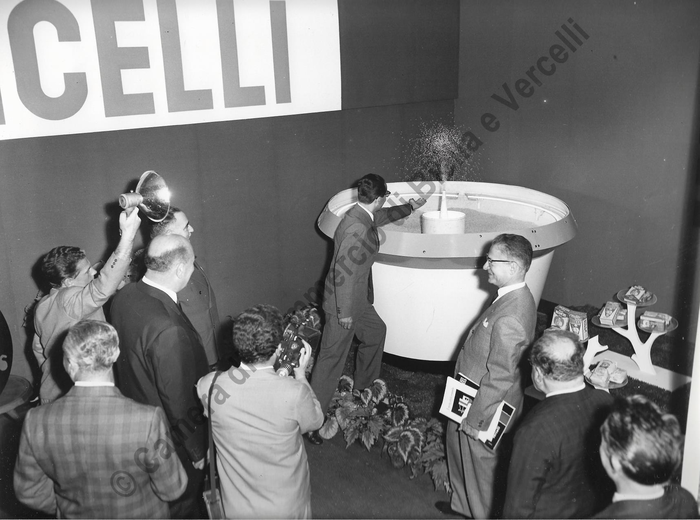 Nell'immagine n° 93 si nota, nello stand della Manifattura di Lane in Borgosesia, la presenza del grande plastico oggi conservato presso la Fabbrica della Ruota.