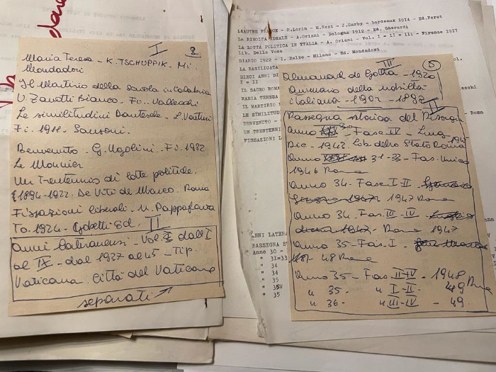 Rilevanti diari e agende che raccolgono appunti personali su argomenti di attualità e sugli interessi professionali.