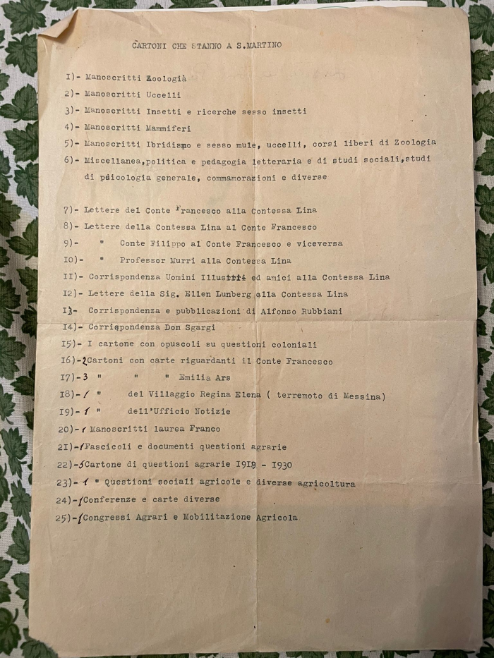 Il fondo è composto da epistolari, materiali di studio (architettura del paesaggio, di parchi e giardini), documentazione relativa alla gestione degli affari di famiglia e ad opere di studio e valorizzazione di attività svolte da membri della famiglia.