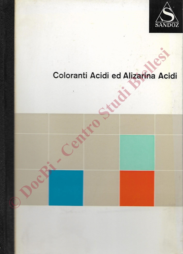 Campionario Sandoz sui Coloranti Acidi ed Alizarina Acidi. In questo volume sono illustrati i coloranti Lanasyn puri. Otre ai campioni e alle relative ricette sono presenti ampie note sull'utilizzo dei prodotti.