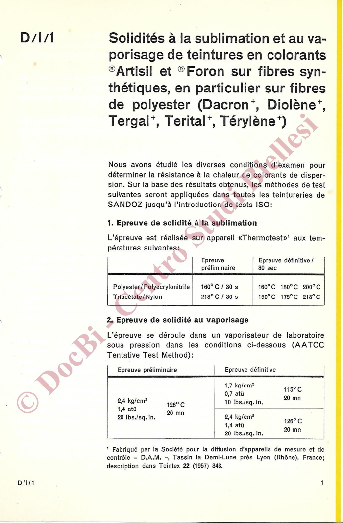 Descrizione dei prodotti per la tintura delle fibre sintetiche, con ampie note sui procedimenti di tintura. In francese.