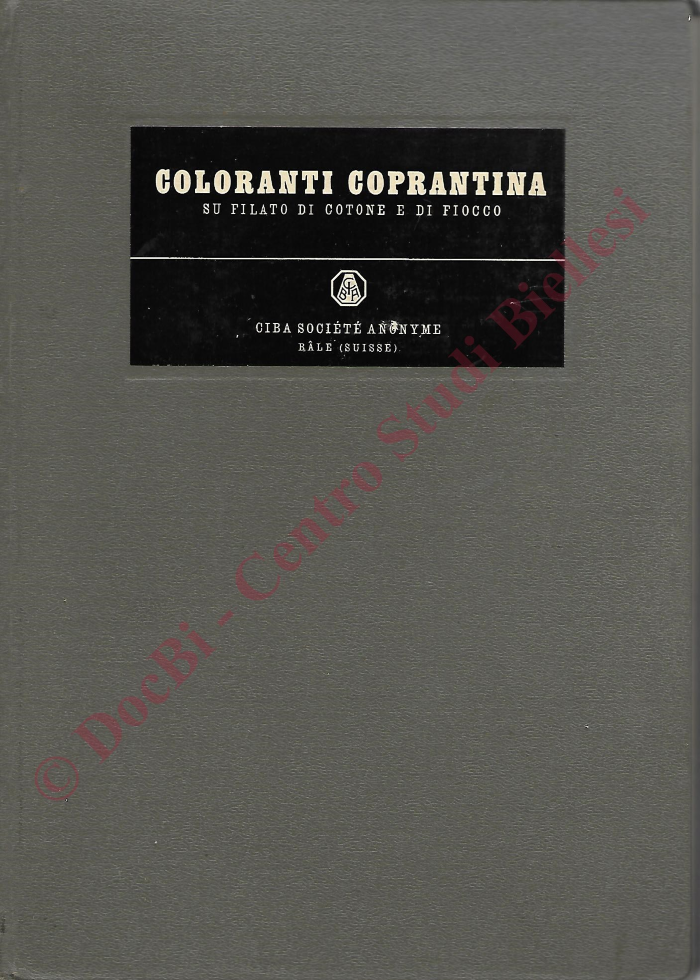 Campionario CIBA sui coloranti Coprantina su filato di cotone e di fiocco. Oltre ai campioni e alle relative ricette sono presenti alcune note sui procedimenti di tintura.