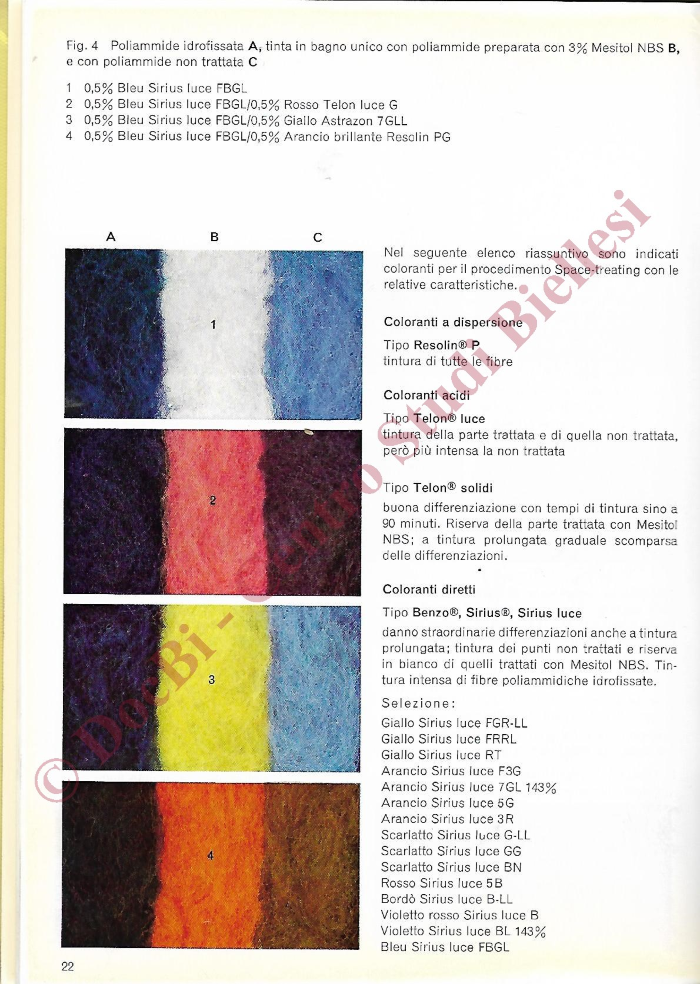 Rivista dei colori Bayer. Dispense su effetti a più colori per lana, Mesitol NBS, ecc. e Addensanti e coloranti.