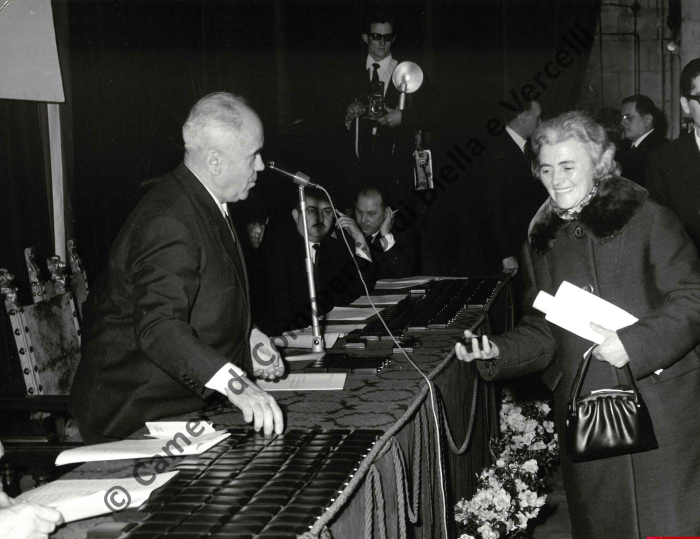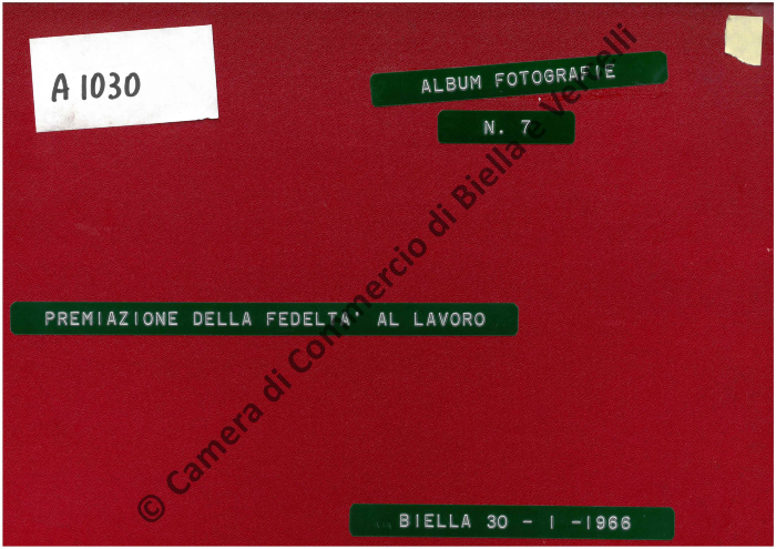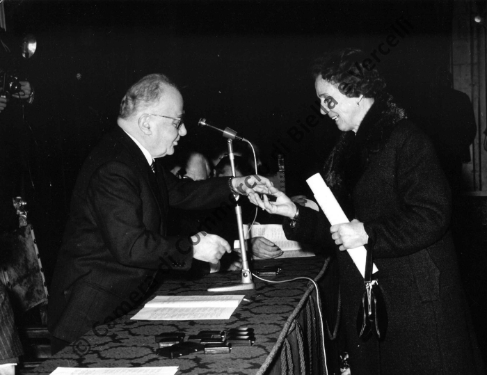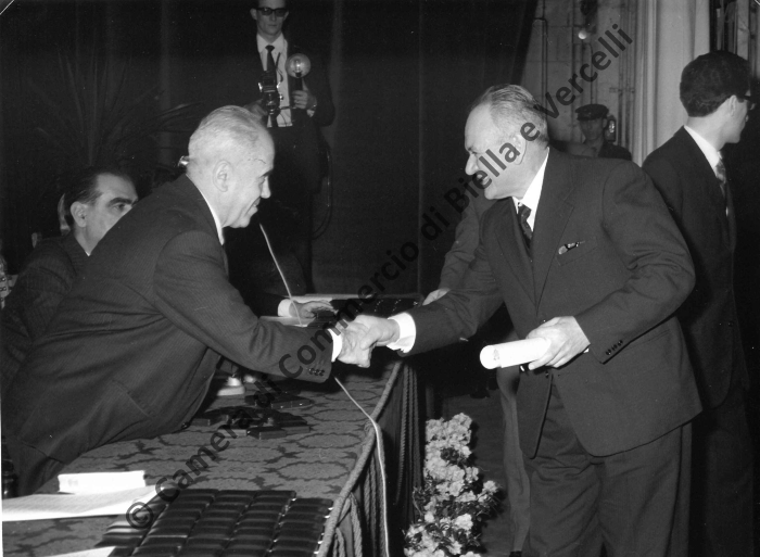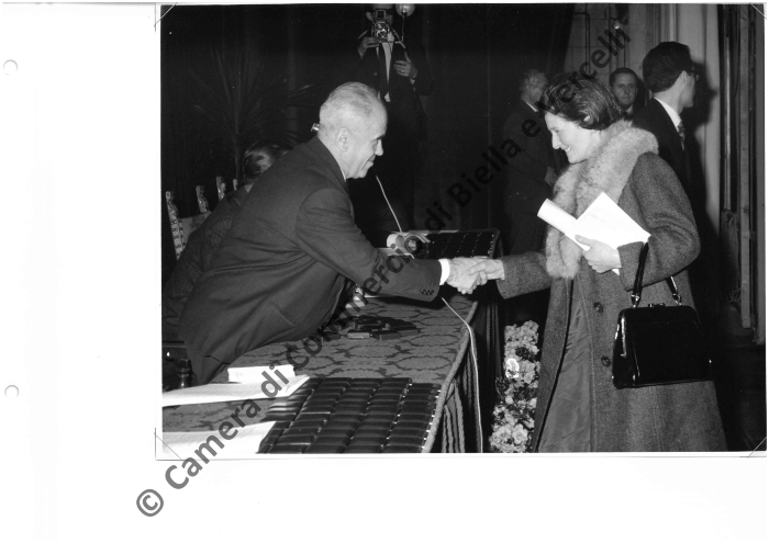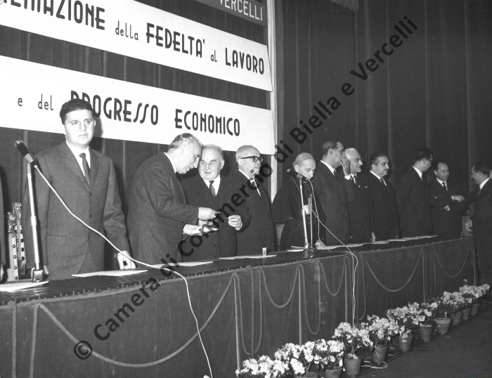 La premiazione riguardava "la fedeltà al lavoro e il progresso economico" per l'anno 1965. La cerimonia si è tenuta presso il Cine-teatro Odeon di Biella. Tra i premiatori, sul palco delle autorità, si riconoscono: Franco Borri Brunetto, sindaco di Biella, il vescovo di Biella, mons. Carlo Rossi, il comm. Rubens Vaglio, Aldo Zegna ecc.