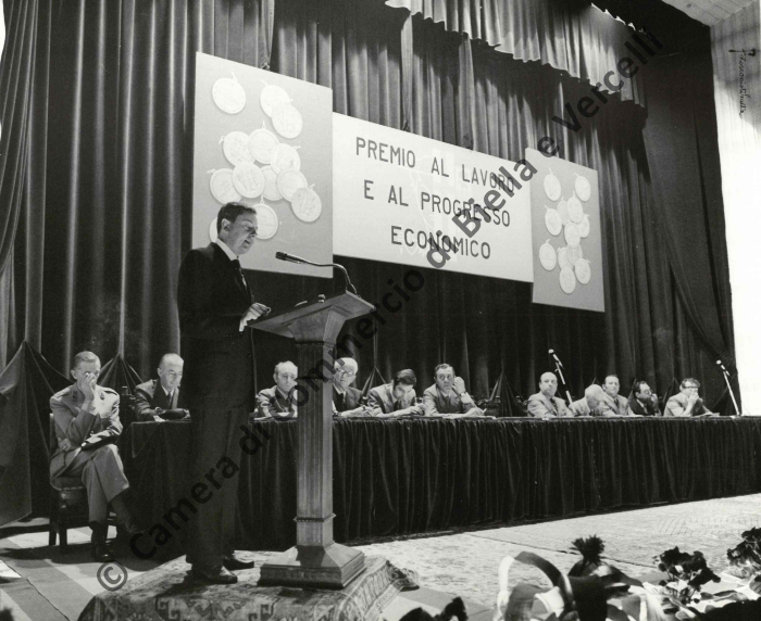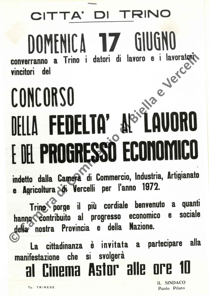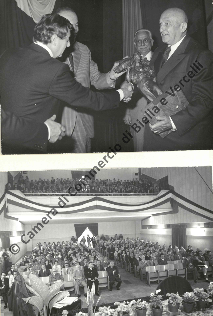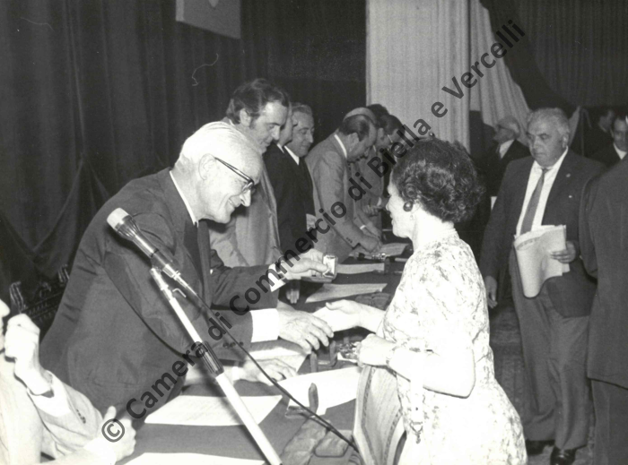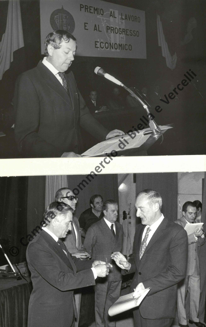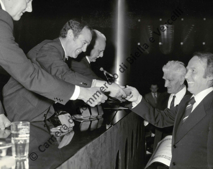 La premiazione riguardava "la fedeltà al lavoro e il progresso economico" per l'anno 1973 svoltasi a Trino Vercellese, per il 1974 a Vercelli (Camera di Commercio, salone "G. Pastore"), per il 1975 a Trivero (Cine-teatro "Giletti" di Ponzone?), per il 1976 a Vercelli e per il 1977 a Biella (Teatro Sociale).