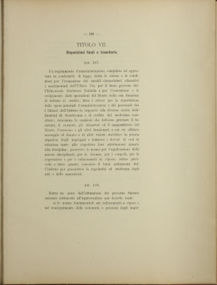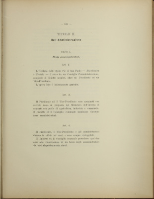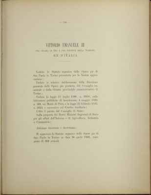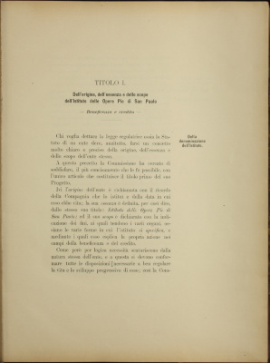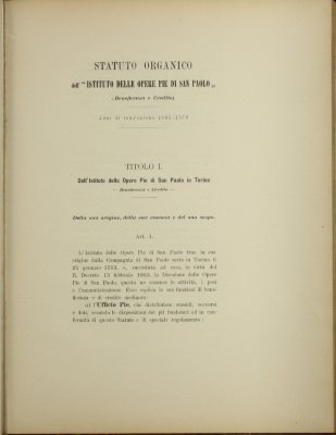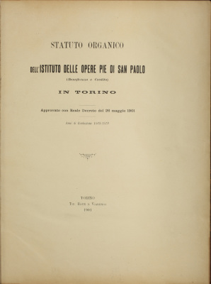Statuto organico dell'Istituto delle Opere Pie di San Paolo - Beneficenza e Credito in Torino, approvato con R. Decreto del 26/5/1901