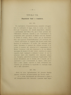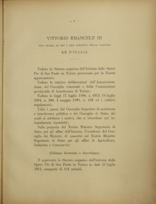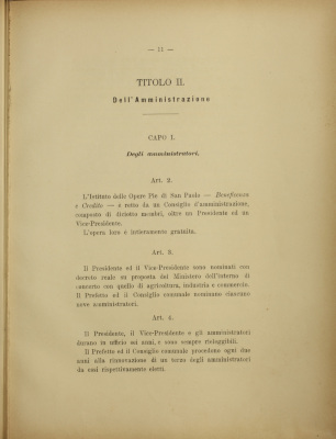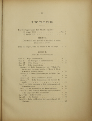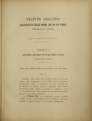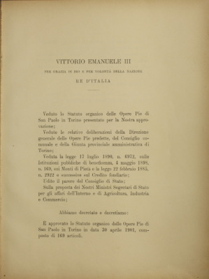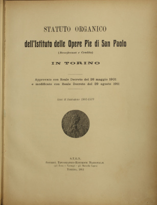 Statuto organico dell'Istituto delle Opere Pie di San Paolo, approvato con R.D. 26 maggio 1901 e modificato con R.D. 29 agosto 1911