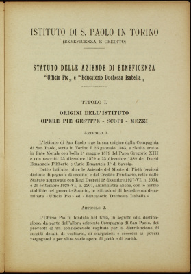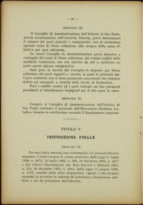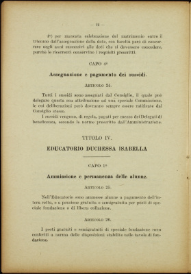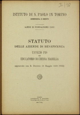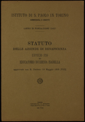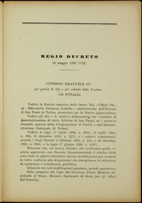 Statuto dell'Ufficio Pio e dell'Educatorio Duchessa Isabella, approvato con R. Decreto 19 maggio 1930
