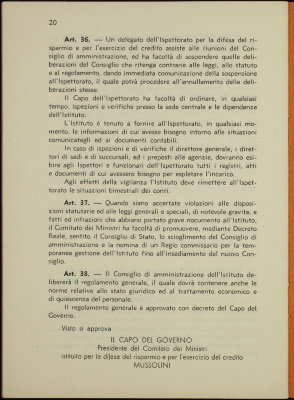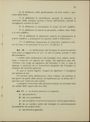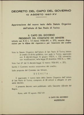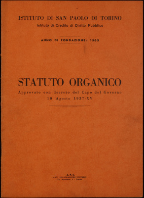 Statuto organico dell'Istituto di San Paolo di Torino - Credito e beneficenza, approvato con Decreto del Capo del Governo del 10 agosto 1937