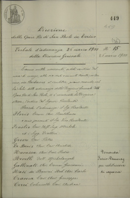 10 Gennaio 1899 fino a 12 Novembre 1901
