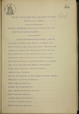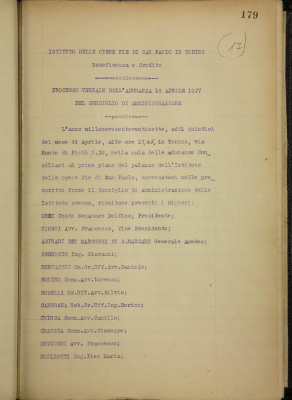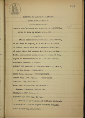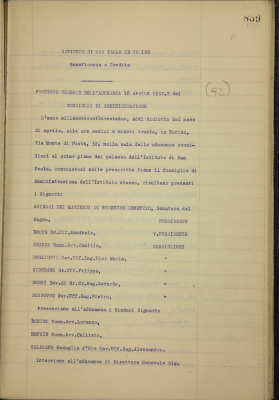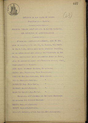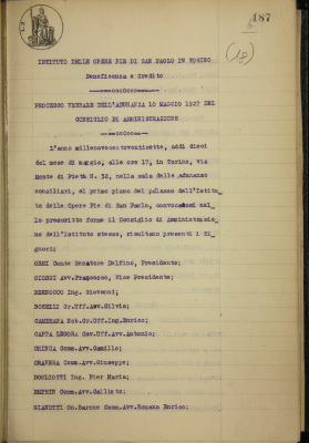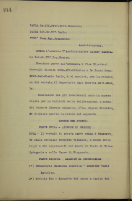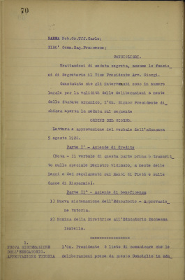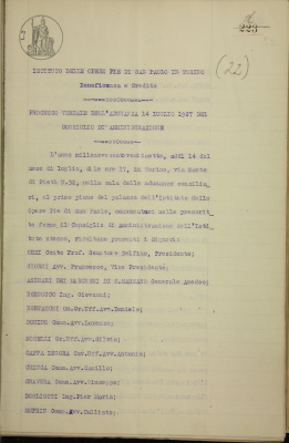 Verbali del Consiglio di Amministrazione per le aziende di beneficenza