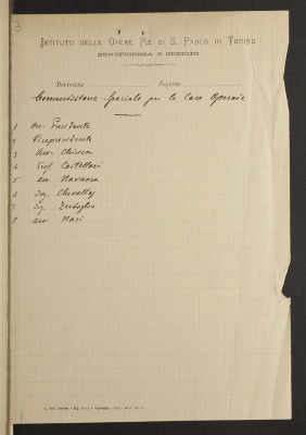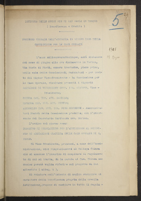 Verbali di adunanza della Commissione Speciale per le case operaie di San Paolo
