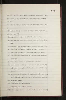 Verbali del Comitato esecutivo - Affari generali e riservati
