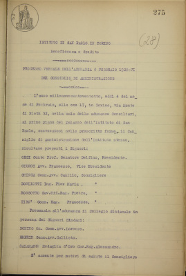 Consiglio di Amministrazione. Verbali delle Aziende di Beneficenza