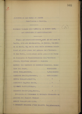 Consiglio di Amministrazione. Verbali delle Aziende di Beneficenza