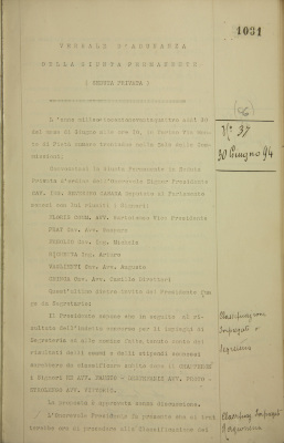 Giunta Permanente. Seduta privata