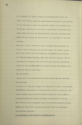 esito ricorso di Ernesto Gazzera al Consiglio di Stato e proposta di compenso al comm. Clerici che difese gli interessi dell'Istituto;