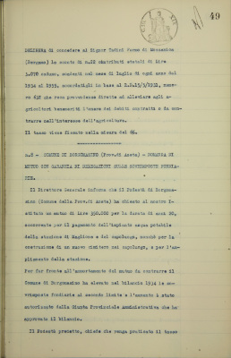 Comune di Borgomasino. Domanda di mutuo con garanzia di delegazioni sulle sovrimposte fondiarie