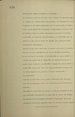Comune di Imperia, domanda di mutuo con garanzia di delegazioni sulle sovrimposte fondiarie