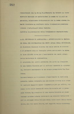 Succursale di Alessandria, autorizzazione di maggiore spesa per la sistemazione dei nuovi locali della succursale