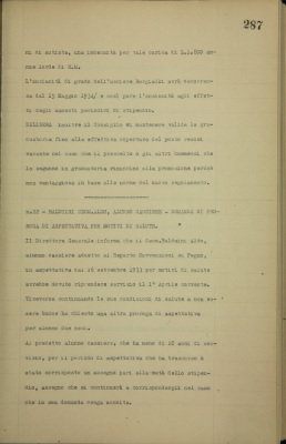 Balduini Aldo, alunno cassiere. Domanda di proroga di aspettativa per motivi di salute