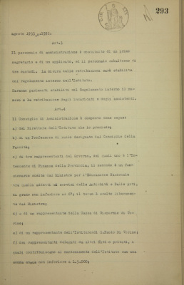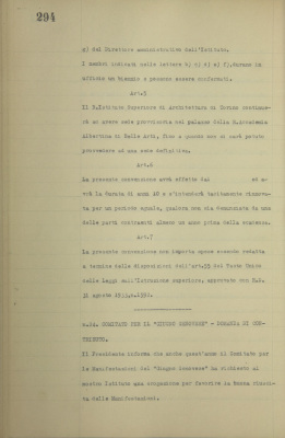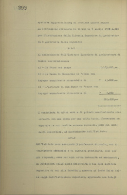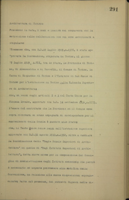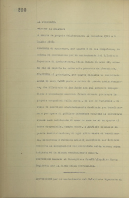 Regio Istituto Superiore di Architettura, approvazione di un nuovo schema di convenzione per il mantenimento dell'Istituto stesso