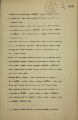 mutui in corso di estinzione per i quali è stata accertata la riduzione del tasso d'interesse; mutui ad enti pubblici accordati dalla Giunta esecutiva;