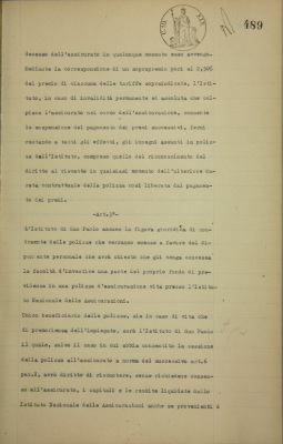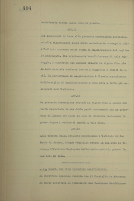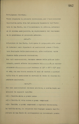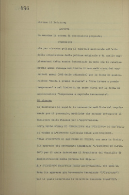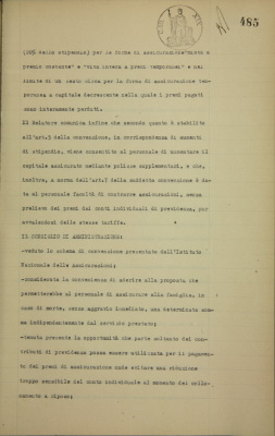 Istituto nazionale delle assicurazioni - Roma. Proposta di convenzione per assicurazioni facoltative sulla vita a favore del personale dell'Istituto