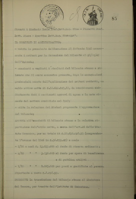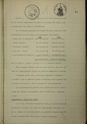 Parte prima - gestioni di credito. Approvazione del bilancio al 31 dicembre 1947 dell'azienda risparmio e credito