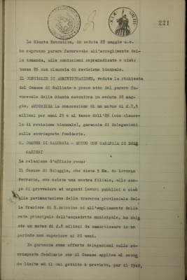 Comune di Saluggia, mutuo con garanzia di delegazioni