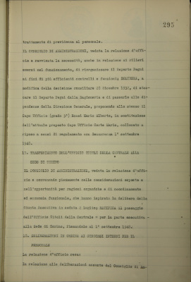 Deliberazioni in ordine ai concorsi interni per il personale