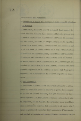 Comunicazioni del presidente: erogazioni a favore dei danneggiati delle recenti alluvioni in Piemonte; dati statistici; varie; trattative per la nuova regolamentazione dei bancari