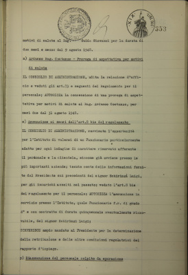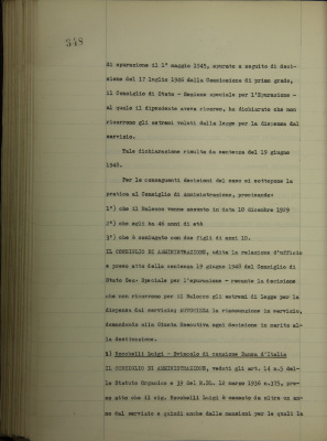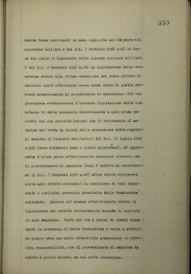 Provvedimenti vari in materia di personale [tra cui: riassunzione del personale colpito da epurazione]