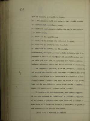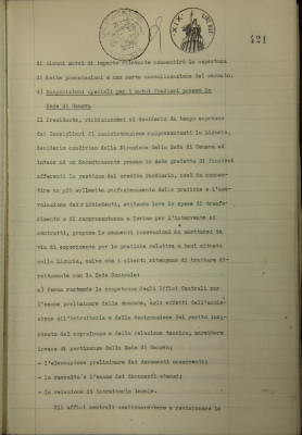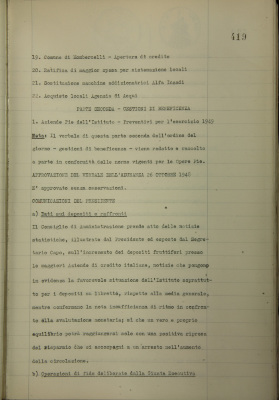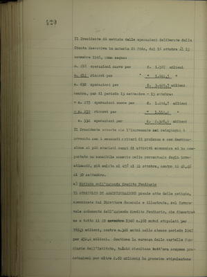 Comunicazioni del Presidente: dati sui depositi e raffronti; operazioni di fido deliberate dalla Giunta esecutiva; notizie sull'azienda Credito fondiario; disposizioni speciali per i mutui fondiari presso la sede di Genova