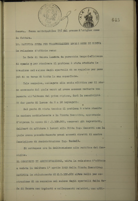 Ratifica di spesa per trasformazione locali della sede di Genova