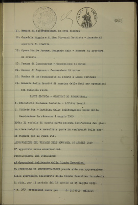 Comunicazioni del presidente: operazioni deliberate dalla Giunta esecutiva; andamento dei depositi e reimpieghi