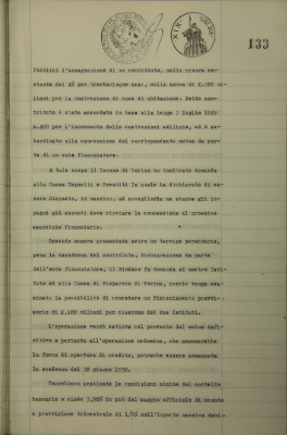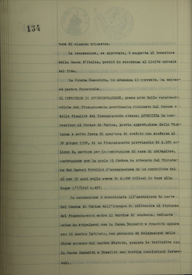 Comune di Torino. Domanda di finanziamento provvisorio
