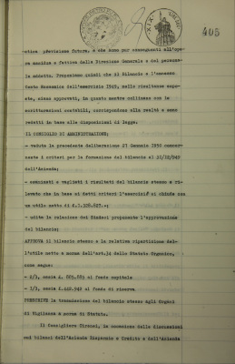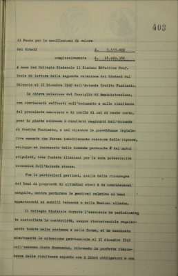 Approvazione del bilancio al 31 dicembre 1949 dell'Azienda Credito Fondiario