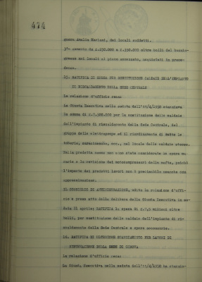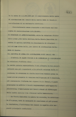 Ratifica di ulteriore stanziamento per lavori di sistemazione della sede di Genova
