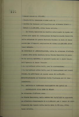 Ratifica di ulteriore stanziamento per lavori di sistemazione della sede di Milano