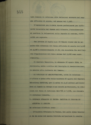 Ospedale oftalmico di Torino, ratifica di proroga di apertura di credito