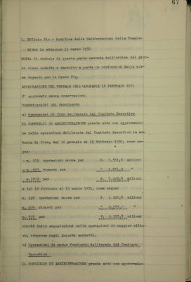 Parte seconda - Gestioni di beneficenza Ufficio pio, ratifica delle deliberazioni della Commissione in adunanza 13 marzo 1951 (verbale a parte)