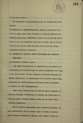 Ratifica di acquisto carta filigranata per cartelle fondiarie
