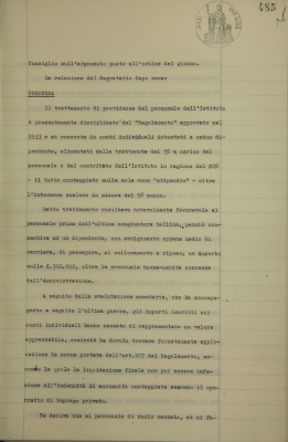 Nuovo regolamento per il personale. Trattamento di previdenza