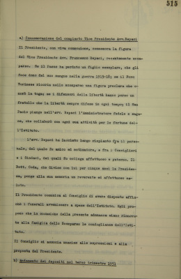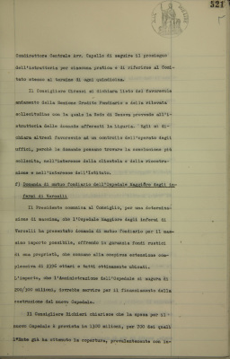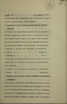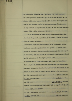 Comunicazioni del presidente: commemorazione del compianto vicepresidente Repaci; andamento dei depositi nel terzo trimestre 1951; operazioni di fido e mutuo fondiario deliberate dal Comitato esecutivo; andamento della Sezione Credito fondiario e provvedimenti conseguenti; domanda di mutuo fondiario all'Ospedale Maggiore degli infermi di Vercelli