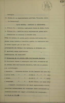 Comunicazioni del presidente: situazione al 31 ottobre 1951 dell'Azienda bancaria; operazioni di fido e di mutuo fondiario deliberate dal Comitato esecutivo